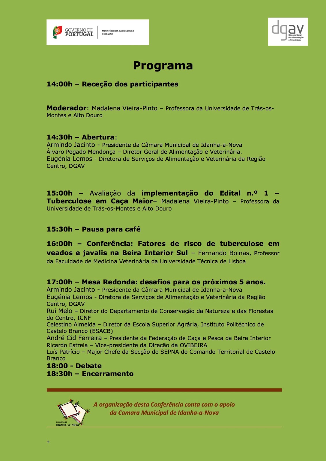 10:00 – Enquadramento Nacional da Tuberculose em Caça.