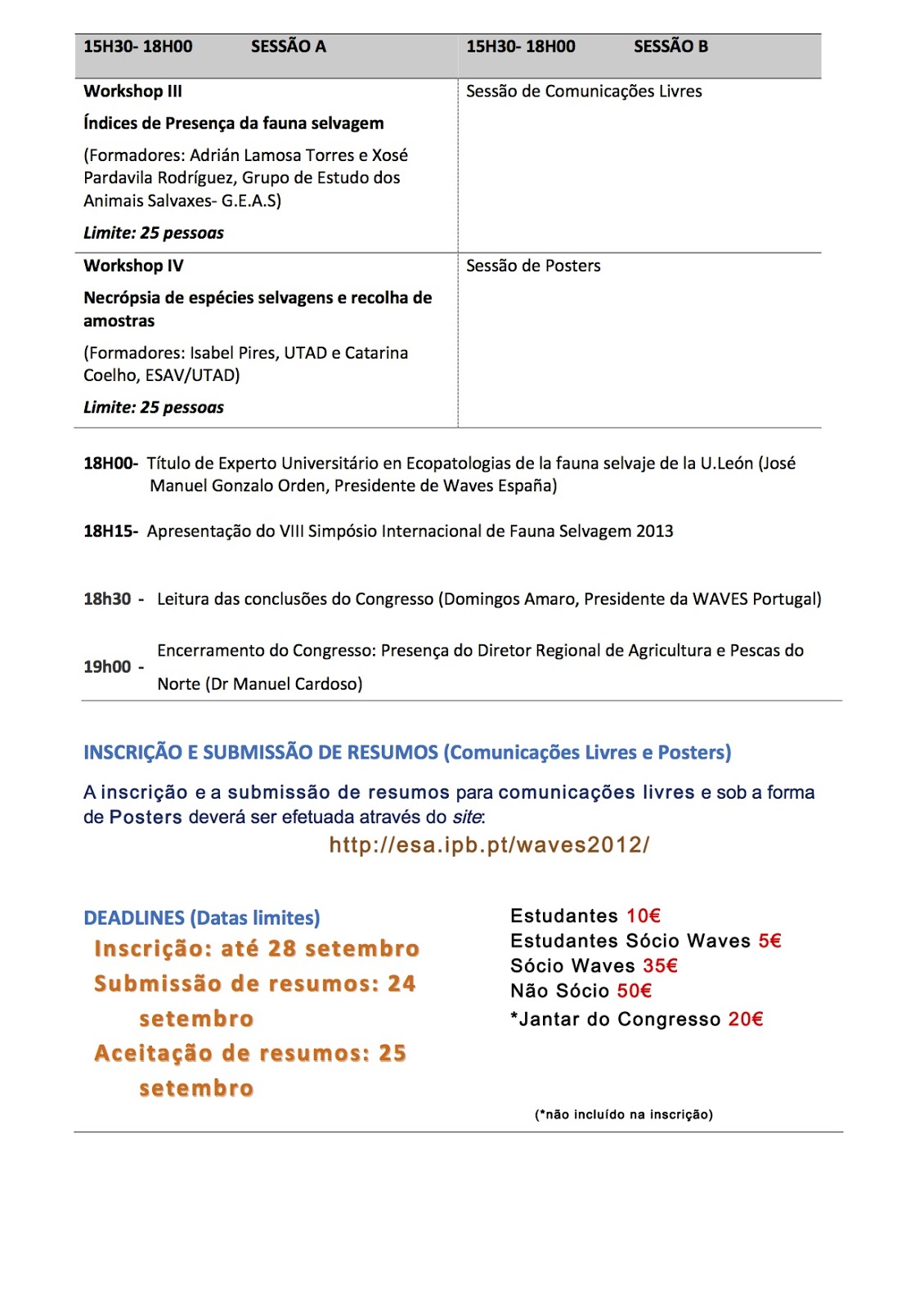 Ao propor-se realizar o II Congresso Português de Fauna Selvagem, A WAVES pretendeu reunir não só investigadores, especialistas, profissionais e estudantes nas áreas do Ambiente e da Conservação da Natureza e da Biodiversidade, mas também cidadãos que se interessam por estas mesmas temáticas e que com os seus conhecimentos e vivências poderão contribuir para um debate alargado sobre a sustentabilidade do nosso Planeta Terra.